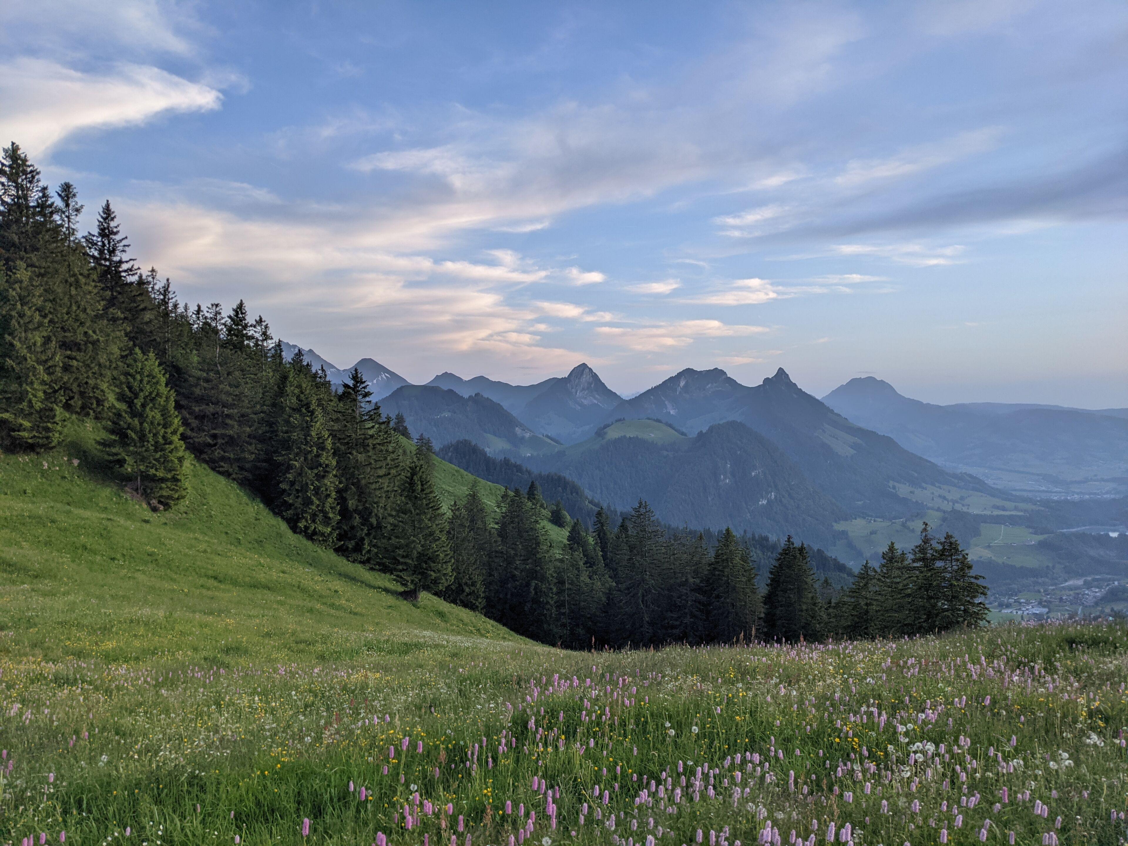 Premier vol de la journée depuis la crête du Kaiseregg. Assez bien malgré le vent a 30km/h 😱, j’ai pu transiter 3 vallons et poser sans soucis sur une pente au vent.